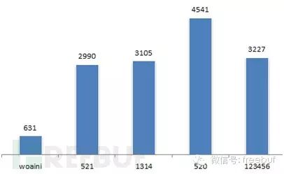 从网络曝光的13万条泄露数据来看,仍有不少的人在设置自己密码时使用了123456、1314、520、521等常用词汇,其中密码中包含520的用户有4500人之多。突然发现,原来我们这么有爱啊。